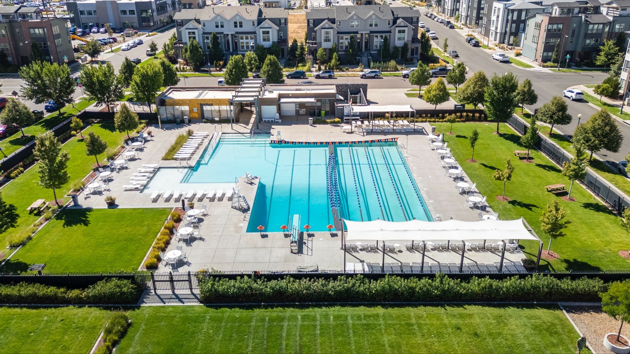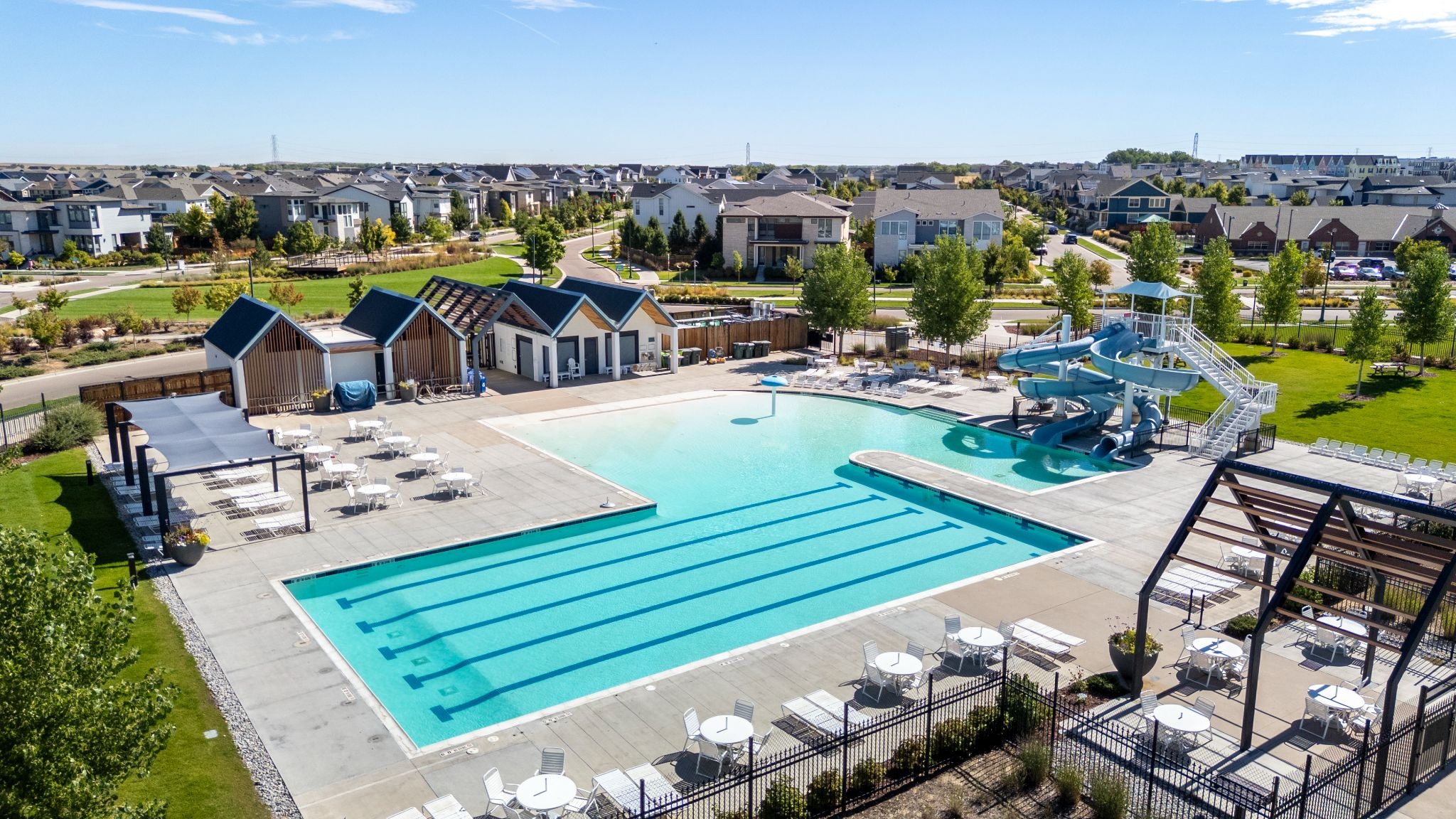 With aviation-based names as a hat-tip to Central Park’s past as the site of the old Stapleton airport, here’s an alphabetical list of all the community pools. Some people frequent the pool within walking distance of their home, while others seek out pools with special features that fit their needs and interests. Here’s your quick Central Park Pool Guide for the 2026 swim season!