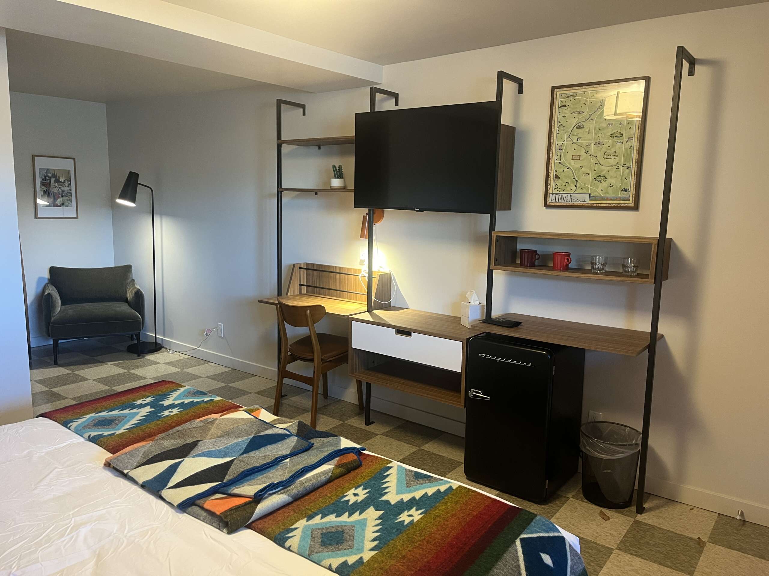 The motel was built back in 1956 but had fallen into disrepair when three years ago, developer Nathan Beal and his wife bought it and renovated it down to the studs. “All new plumbing, electric, flooring, walls, everything,” he says.