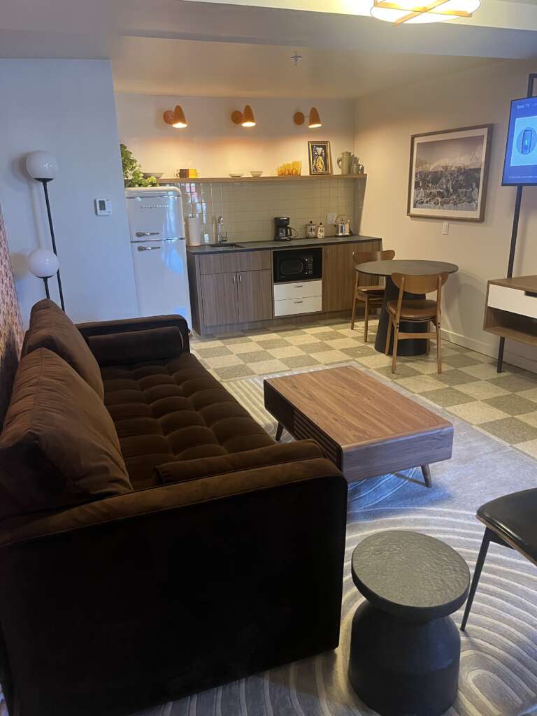 The design is by Melissa Friday of Xan Creative, who also designed interiors for Denver Biscuit Company and Snooze, and it’s the perfect cool but not kitchy retro style. Check out the old-school Frigidaire refrigerators, avocado tile in the bathroom, and alpaca blankets from Loom Colorado on the beds.