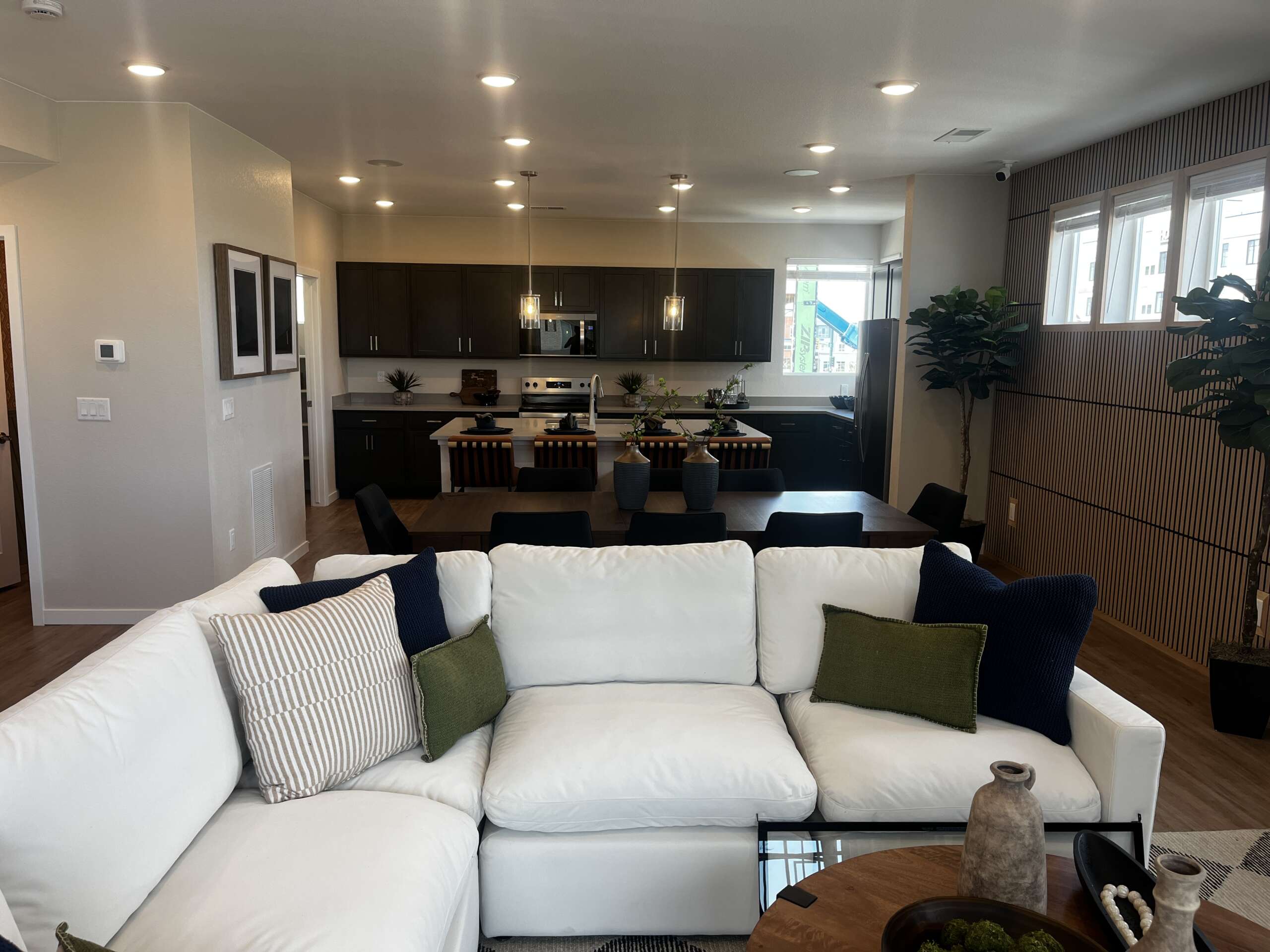 3 bedrooms + study, 1 full, 1 ¾, 1 ½ bathrooms, electric fireplace, 2-car garage, approximately 1,914 sq ft. - Contour 1 @ 9200 E 47th Avenue #202 – $541,449 total purchase price