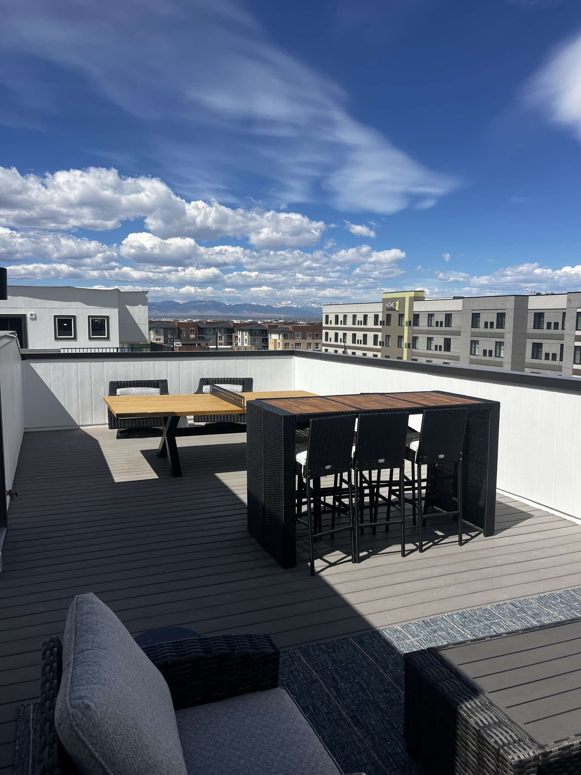 Rooftop deck, 3 bedrooms + study, 1 full, 1 ¾, 1 ½ bathrooms, electric fireplace, 2-car garage, approximately 1,914 sq ft. - Contour 1 @ 9200 E 47th Avenue #102 – $606,089 total purchase price