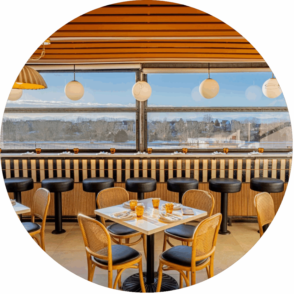 Perched high atop the Stanley Marketplace, Traveling Mercies starting winning awards just shortly after its opening and was even a 2025 James Beard Foundation Semi-Finalist for Best New Bar Award. Known as a cocktail and oyster bar, we love its clean, crisp interior with coastal vibes that would bring you oceanside if it weren’t for the gorgeous mountain views. Turn your head away and focus on the beautifully briny, plump oysters paired with a selection from the masterfully chosen cocktail or wine selection and be transported to a place by the bay. Check out their opening, late-night, and all day Tuesday happy hours.